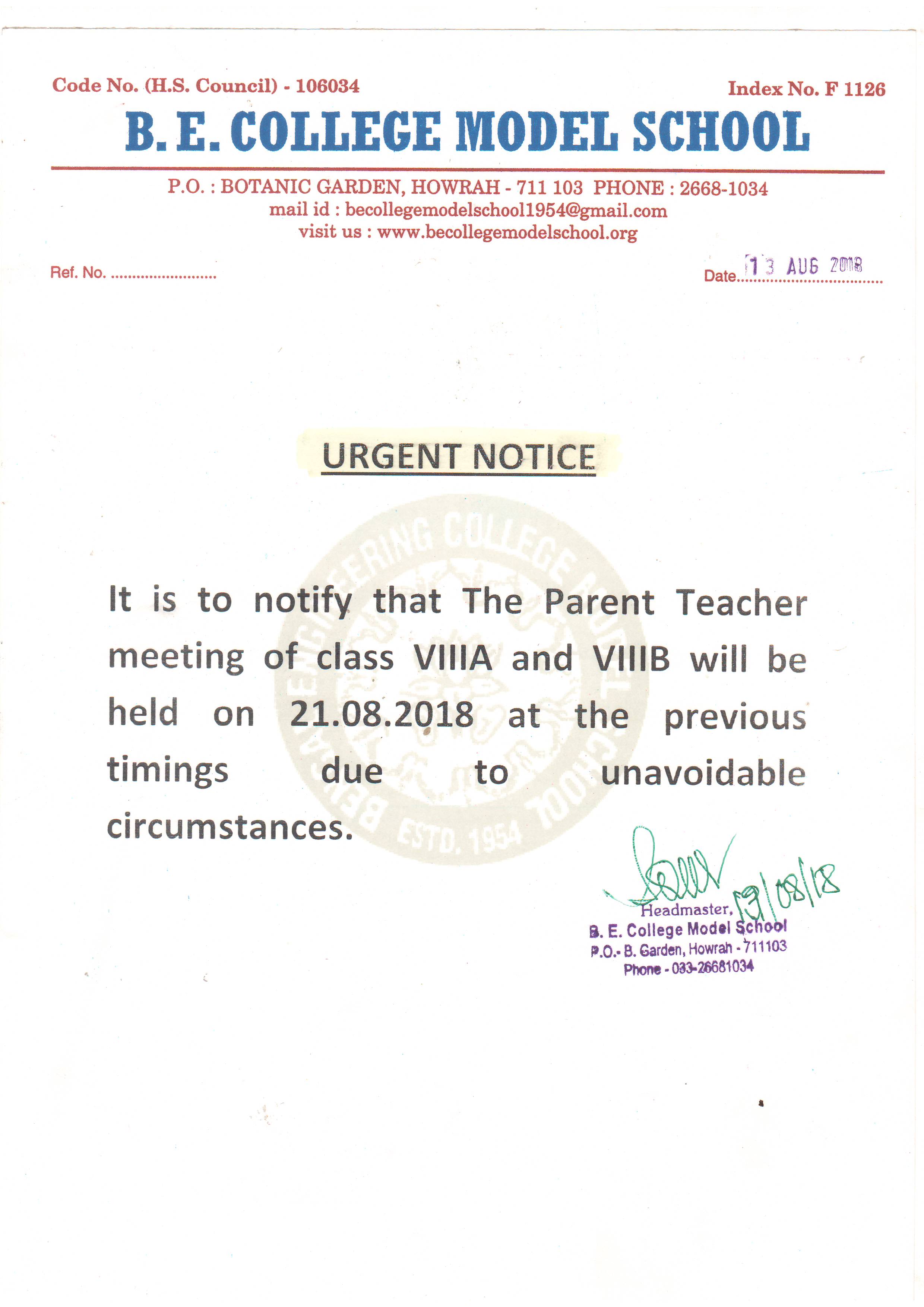 The schedule of Parent-Teacher meeting of the school in the Academic Session 2016. 02/09/2016Head Master Download