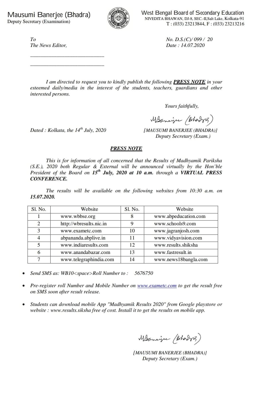 PPS of Madhyamik Pariksha – 2019 23/05/19Head Master Download
